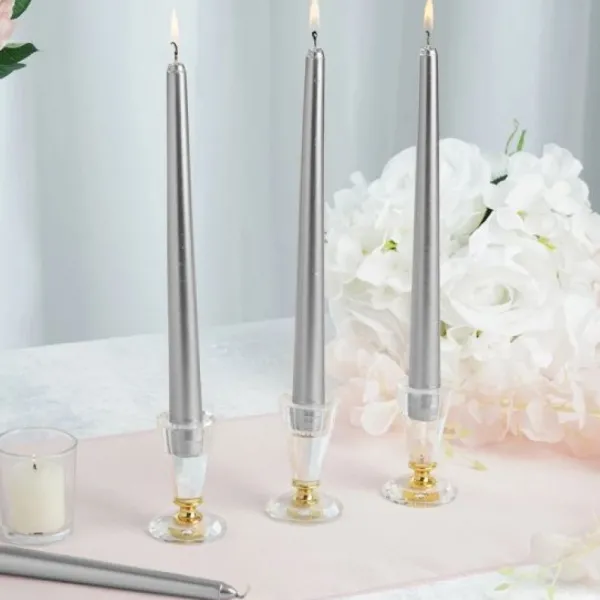 Optez Pour Ce Lot De 2 Bougies Chandeliers Mariage Argent Des Bougies Flambeaux Idéales Pour Votre Deco De Table De Mariage