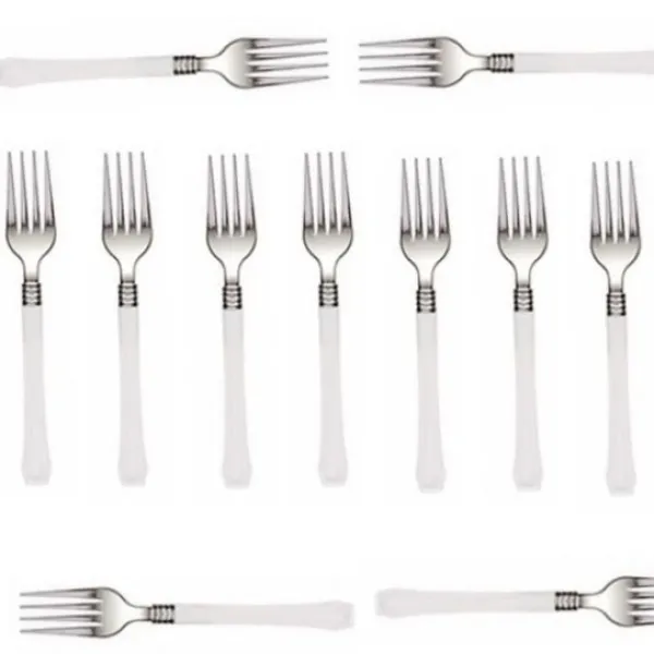 Ces Fourchettes Réaliste Blanches Sont Vendus Par Sachet De 20 Pièces À Prix Économique, Et Sont Lavables Et Réutilisables