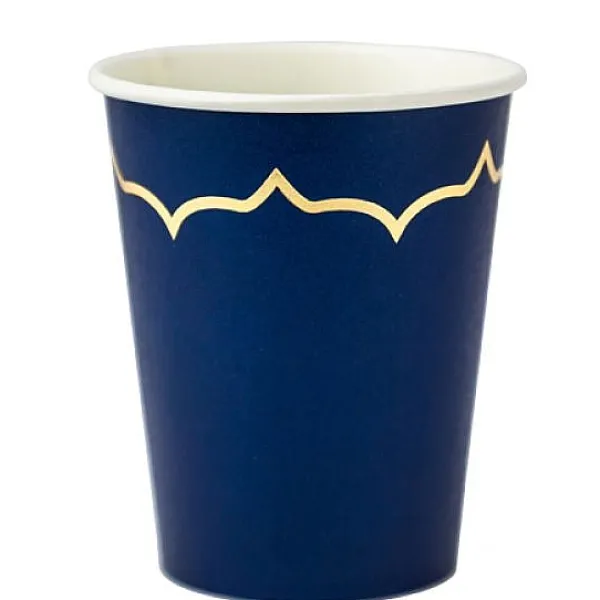 Le Gobelet En Carton Bleu Marine Liseré Or Est Vendu En Lot De 8 A Prix Discount Avec Une Matiere Carton Ecologique