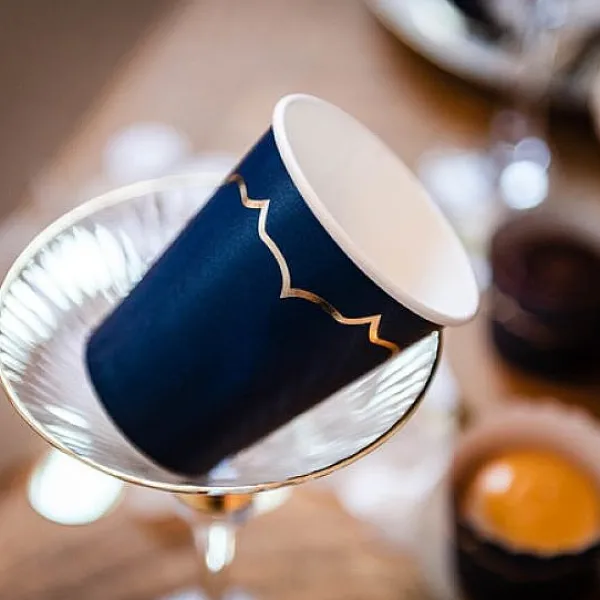 Vous Pourrez Accorder Les Gobelets En Carton Bleu Marine Liseré Or Avec Notre Large Choix De Vaisselle Jetable Pas Cher Disponible Sur Notre Boutique
