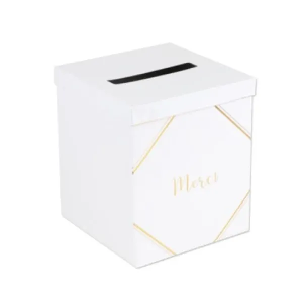 Parfaite L’Urne Mariage Merci Blanche Et Or, Une Urne A Enveloppe Luxe Avec Sa Couleur Or Et Blanche