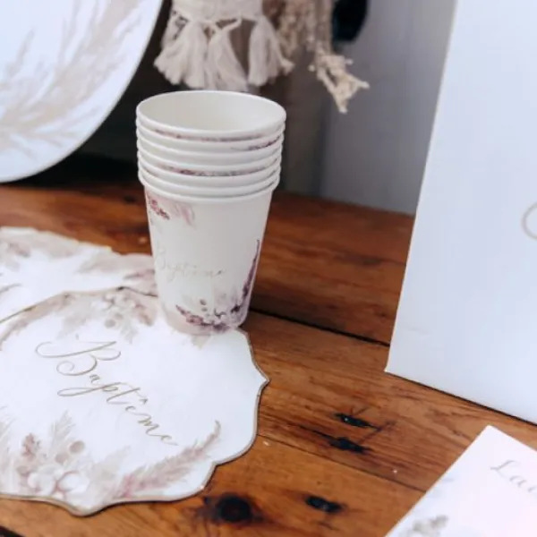 Vous Pourrez Accorder Les Gobelets En Carton Baptême Pampas Fleur De Coton Avec Notre Large Choix De Vaisselle Jetable Pas Cher Disponible Sur Notre Boutique