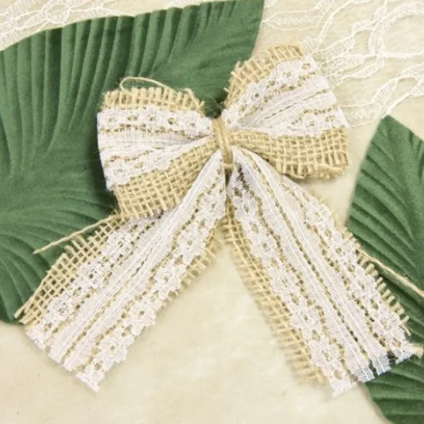 Noeud En Jute Et Dentelle , Choisissez Ce Lot De 2 Petits Noeuds En Jute Et Dentelle Pas Cher Pour Votre Décoration De Table Mariage
