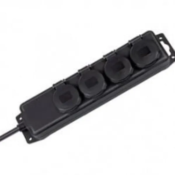 C’Est Un Bloc Multiprise Noir Sans Interrupteur Avec 4 Prises Avec Terre Equipées De Ses Volets De Protection Étanche Ip 4, Le Bloc Multiprise Étanche 4 Entrées Est Proposé À Prix Discount Avec Sa Rallonge De 1.5 Mètres