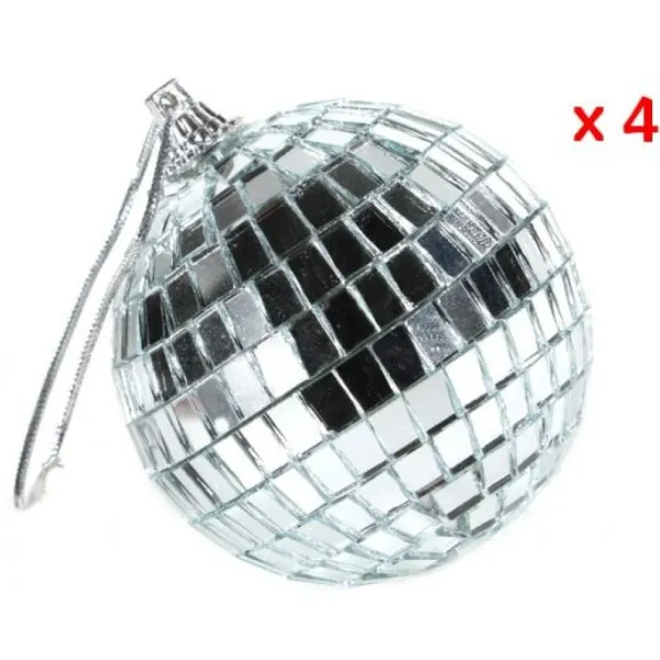 Cette Boule A Facettes Est Proposée En Sachet De 4 À Prix Discount, Chacune D’Elles Mesurent 7Cm Et ComprenDécordon Argent Pour La Suspendre