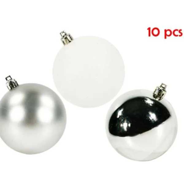 Les Boules De Noel Blanches Et Argent Sont Proposées En Lot De 10 À Prix Discount, Chacune D’Elles Mesurent 8Cm Et ComprenDécordon Argent Pour La Suspendre