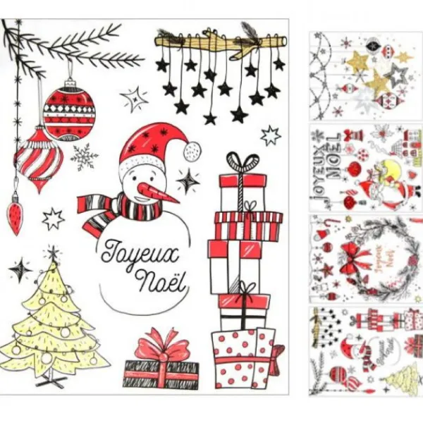 Le Sticker Vitro Statique Dessins De Noel Est Proposé À L’Unité Avec Une Dimension De 30 X 38Cm